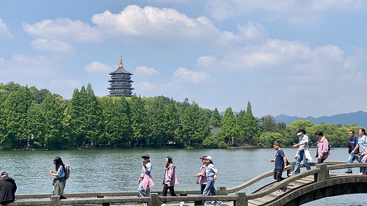 2023年4月26日9:30,在温暖的春风里,明媚的阳光下,参加本次活动的全体成员准时从钱塘门遗址出发,顺时针环西湖一周,途经南山路、雷峰塔、苏堤、断桥等著名景点。